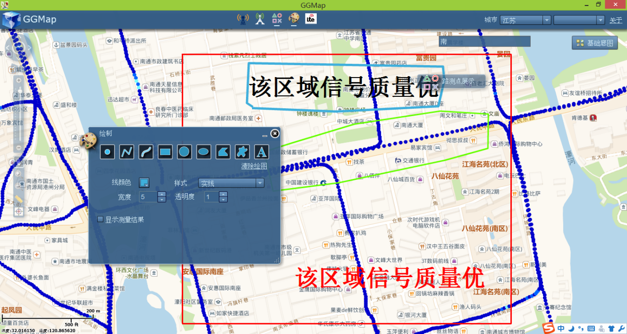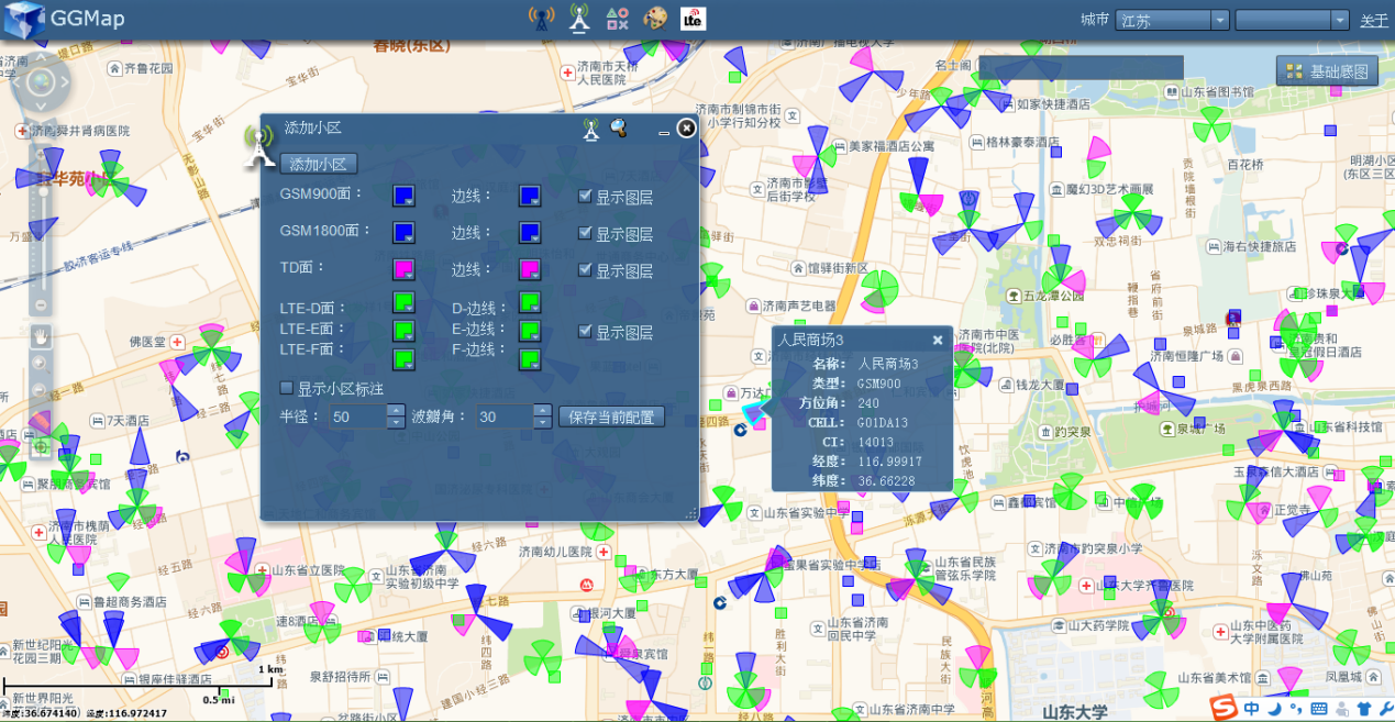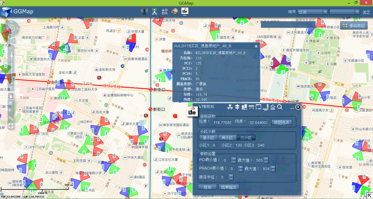 GGMap將無線通訊小區無偏差的投影到在線地圖(高德街道、高德影像、谷歌街道、谷歌影像),并能讓用戶自定義展示樣式。同時還支持 LTE-PCI規劃、路測數據地圖展示、地圖標會功能。