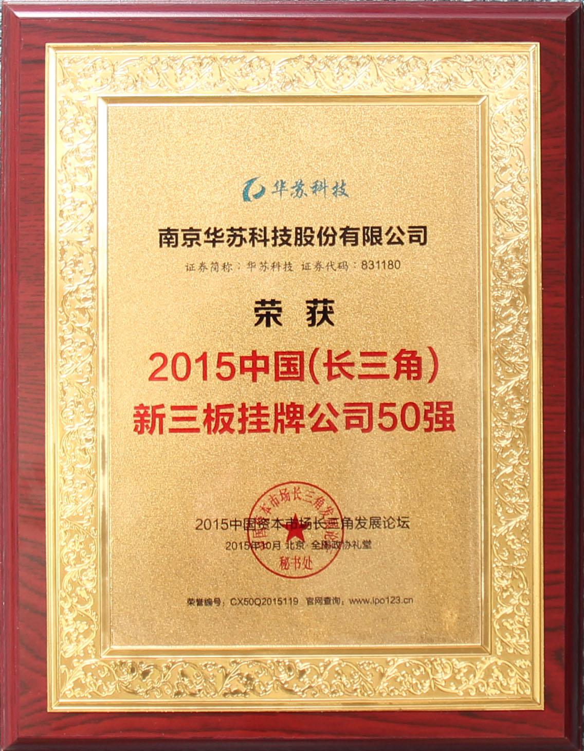 熱烈祝賀華蘇科技(831180)榮獲“2015中國(長三角)新三板掛牌公司50強”