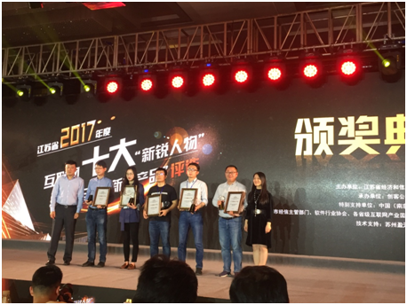 2018年4月3日下午,江蘇省2017年度互聯網十大新銳人物與創新力產品評選頒獎典禮在南京軟件谷楚翹城會議中心落下帷幕。