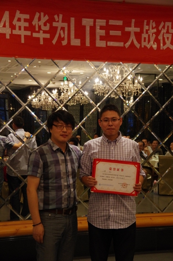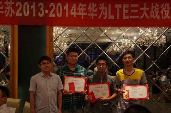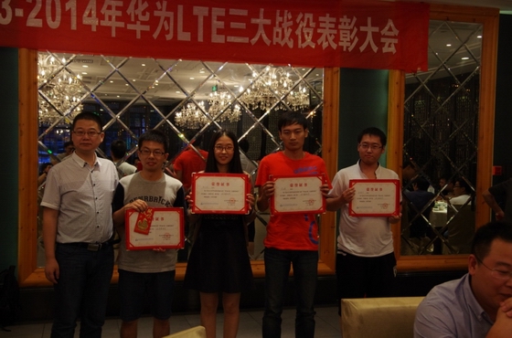 ? 2014年5月,獲LTE三大戰(zhàn)役優(yōu)秀進(jìn)度獎,劉永升、甄文興獲華為優(yōu)秀個人 。
