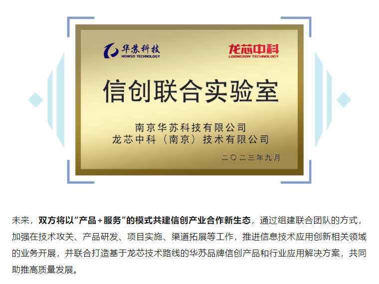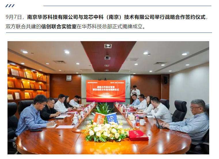 華蘇科技與龍芯中科舉行戰略合作簽約暨信創聯合實驗室揭牌儀式