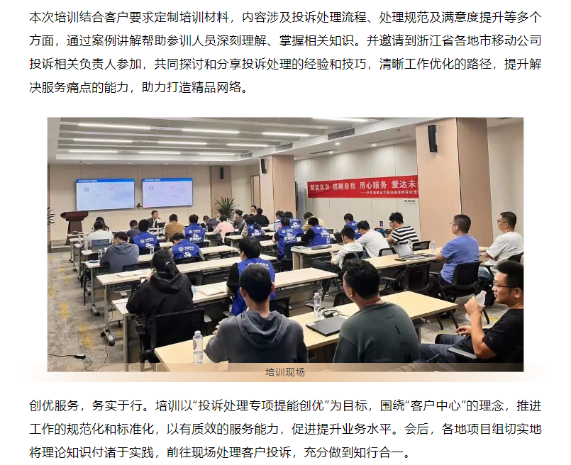 全面提升客戶滿意度,華蘇科技 杭州分公司面向浙江各地市項(xiàng)目組,于近日開(kāi)展投訴處理專項(xiàng)培訓(xùn)會(huì)。