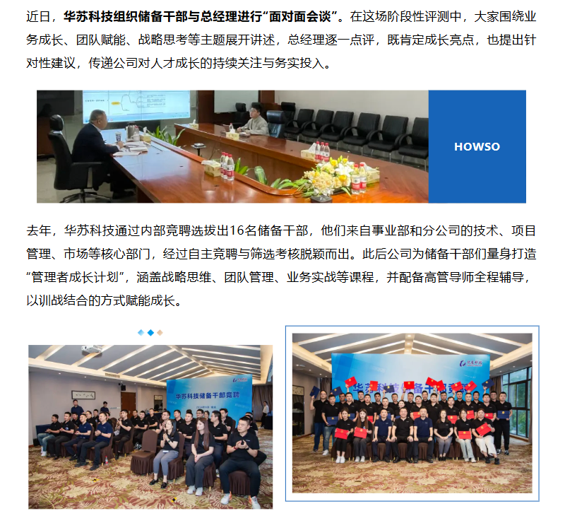 近日,華蘇科技 組織儲(chǔ)備干部與總經(jīng)理進(jìn)行“面對(duì)面會(huì)談”。在這場(chǎng)階段性評(píng)測(cè)中,大家圍繞業(yè)務(wù)成長(zhǎng)、團(tuán)隊(duì)賦能、戰(zhàn)略思考等主題