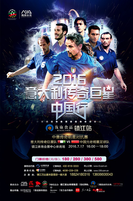 近日,“2016意大利傳奇巨星中國行”于江蘇鎮江正式開啟行程。羅伯特·巴喬、弗朗哥·巴雷西、保羅·羅西、薩爾瓦托雷·斯基拉奇等20多位意大利傳奇巨星親臨現場。中國元老明星足球隊的范志毅、馬明宇、黎兵、彭偉國等昔日國足主力也來到現場,喚起了現場球迷對這經典一代的回憶。一場來自中意明星球員腳下的爭奪戰一觸即發!